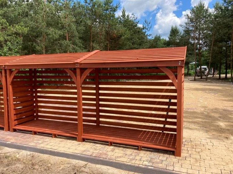 Solidna i wytrzymała drewutnia przeznaczona do przechowywania drewna opałowego. Konstrukcja wykonana z kantówek o przekroju 8x8, legary podłogowe oraz konstrukcja dachu z elementów 30x95 mm, deski ścienne i podłogowe o gr. 20 mm.